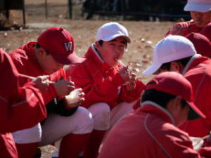 極寒の中グランドでは熱い試合が行われ、最後の打者までどちらが